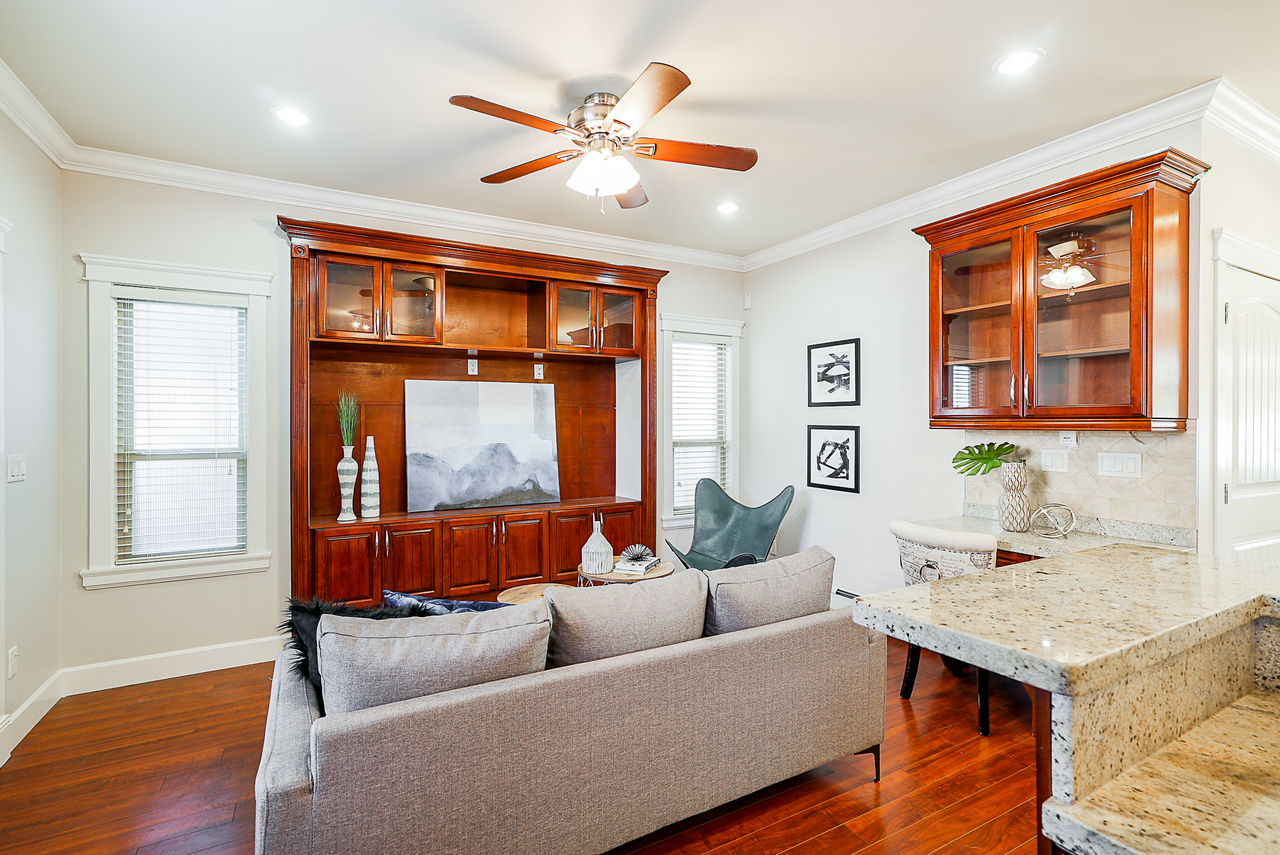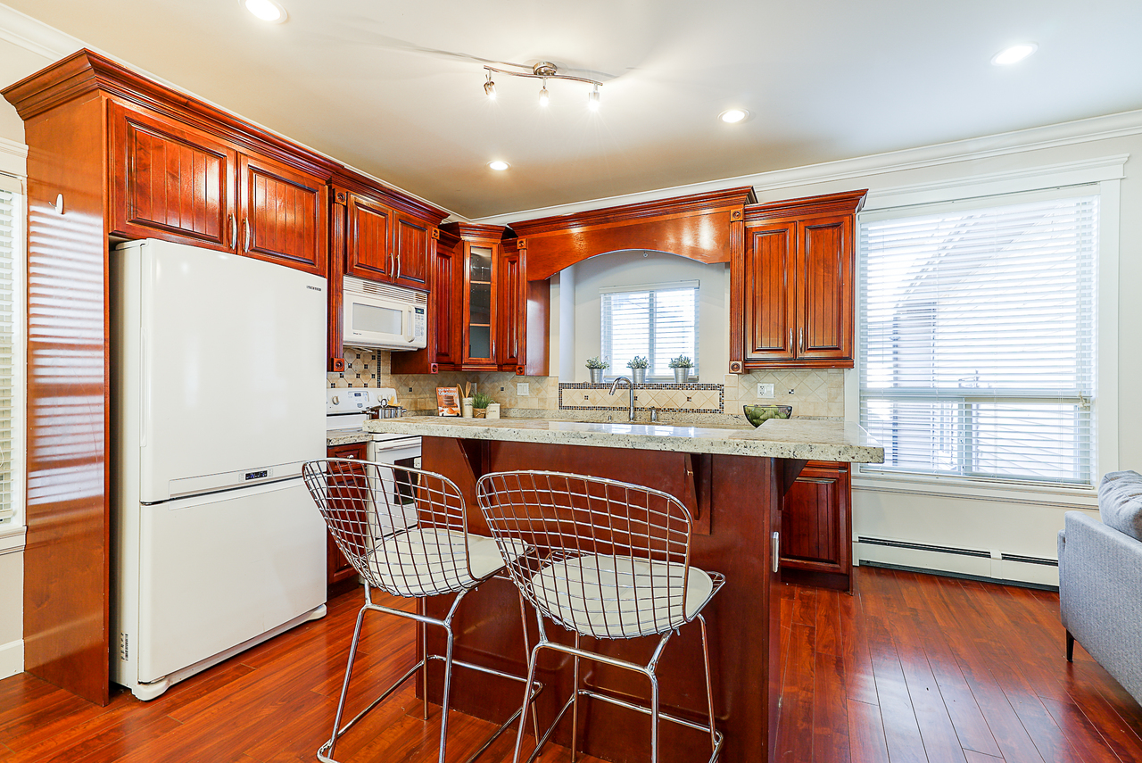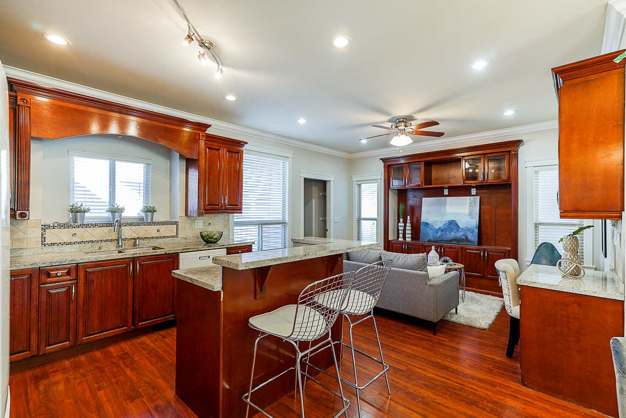 3 level home plus COACH HOUSE located on QUIET SIDE STREET in one of the most desirable areas of Surrey. Quality, bright, open floor plan, with granite countertops, crown mouldings, etc. MAIN FLOOR features spacious family rm w/fireplace, beautiful maple kitchen+elegant living & dining rm, 2 pce powder rm + laundry rm/pantry. UPSTAIRS 3 bdrms, 2 full bathrms, Master bedroom spa-like ensuite with jetted tub & separate shower. BASEMENT features 2 bdrms, media rm, full bathroom. COACH HOUSE has authorized self-containd 1 bdrm suite w/laundry above ATTACHED 2 car garage. Back lane access. Close to schools, shopping, parks, transit, YMCA. Easy access to Vancouver & Richmond. Minutes to US Border, Langley, White Rock.